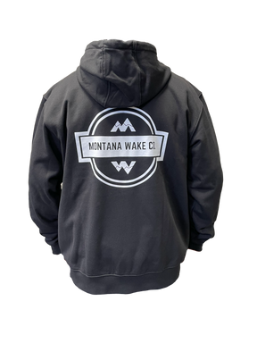 Built for those who work hard and play harder, the Montana Wake Co. Hooded Sweatshirt is designed for durability, comfort, and weather resistance. Made from a rugged cotton-poly blend with Rain Defender® durable water-repellent technology, it keeps you warm and dry without the bulk of a heavy jacket. The jersey-lined three-piece hood with a drawcord closure provides a secure fit, while the antique-finish brass zipper adds a touch of durability. Functional details include two front hand-warmer pockets, a hidden security pocket, and stretchable, spandex-reinforced rib-knit cuffs and waistband for a comfortable, flexible fit. Featuring the Montana Wake Co. logo on the front left chest and bold branding on the back center, this sweatshirt blends performance with signature style—perfect for life on and off the water.