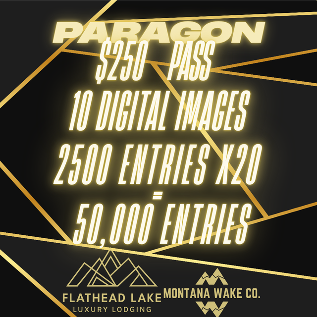 The Paragon Pass grants you access to ten exclusive digital images, capturing the complete experience. Upon purchase, you'll receive a download link via email. This pass also offers double the usual entries and each dollar spent on the pass equals 20 entries. THE PASS IS NOT INCLUDED IN THE 25x MULTIPLIER! Please note that this bonus only applies to the Paragon Pass itself and not to any additional merchandise purchased alongside it. If you prefer a versatile option without choosing specific merch, the Paragon Pass provides significant value and enhanced entry opportunities. With the purchase of this pass, you will receive 50,000 entries into the ultimate giveaway! THE PASS IS NOT INCLUDED IN THE 25x MULTIPLIER!